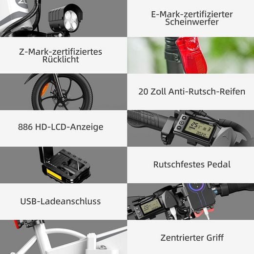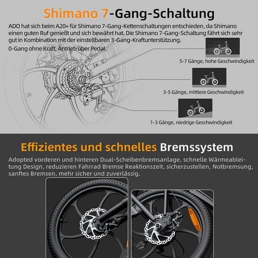 Doppelscheibenbremssystem vorne und hinten, schnelles Wärmeableitungsdesign, sorgen für Notbremse, glatte Bremse, sicher und zuverlässig.