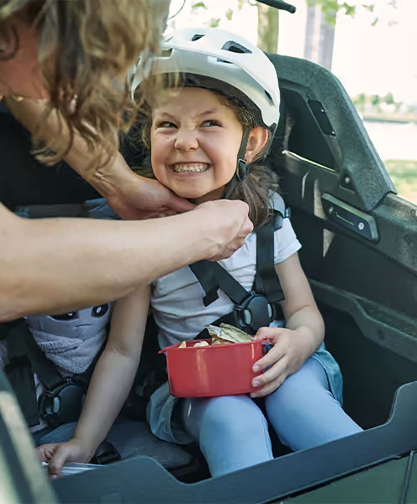 Die voll ausgestattete Cargobox mit Ortho-Safety-Collar und All-Weather-Top fungiert als Sicherheitsfahrgastzelle für die kleinen Mitfahrer. Sie bietet nicht nur Schutz vor den Elementen, sondern auch eine sichere Umgebung für die Fahrt.